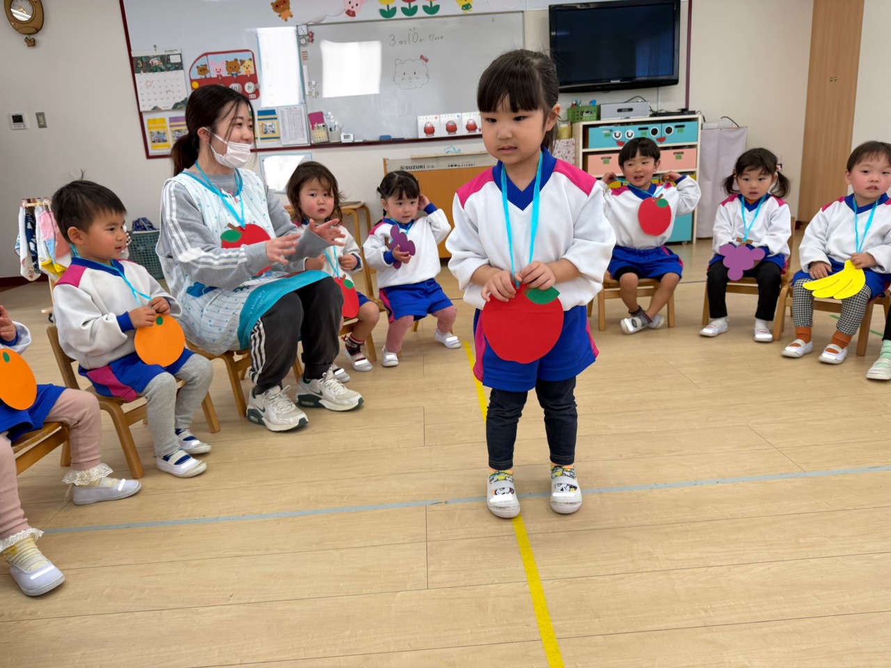 自分で考えて、果物の名前を言うことが出来ました。