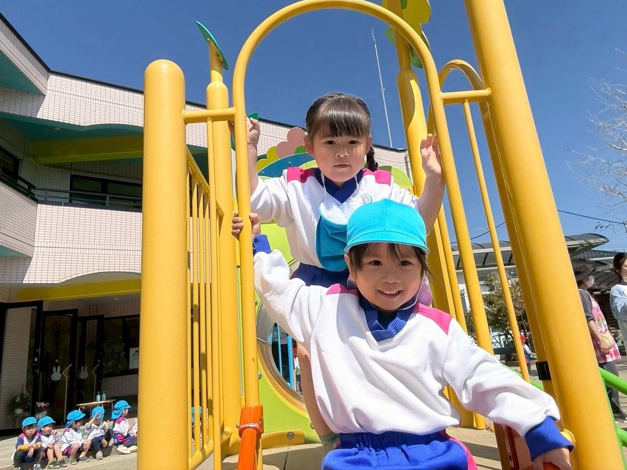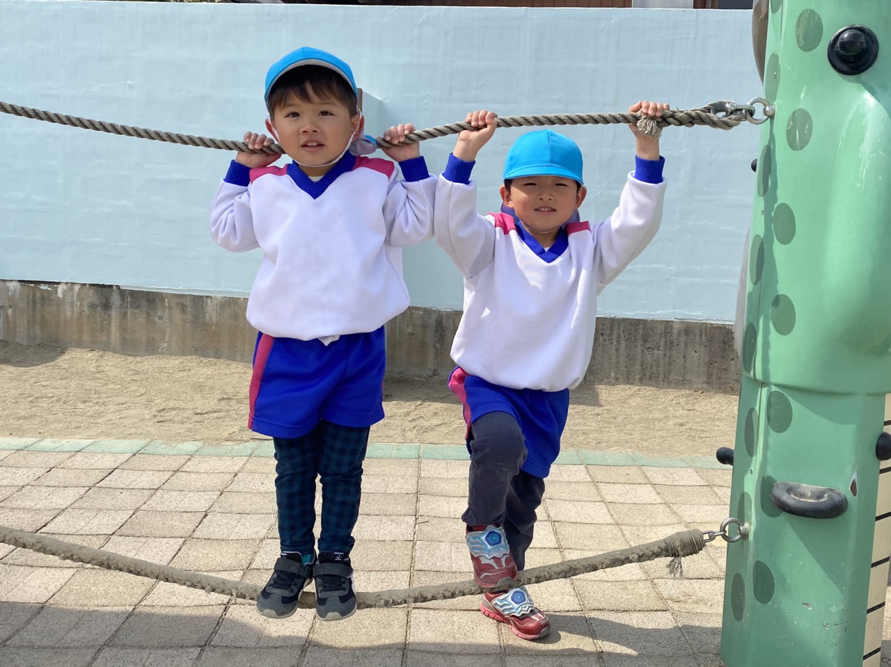 すっかりつかまって綱にのぼります! バランスが大事☆