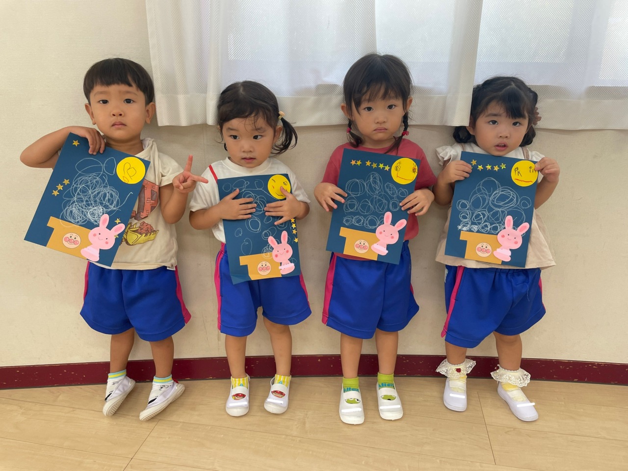 夜空にお星さまもキラキラさせました。 お家で飾ってくださいね(*^▽^*)