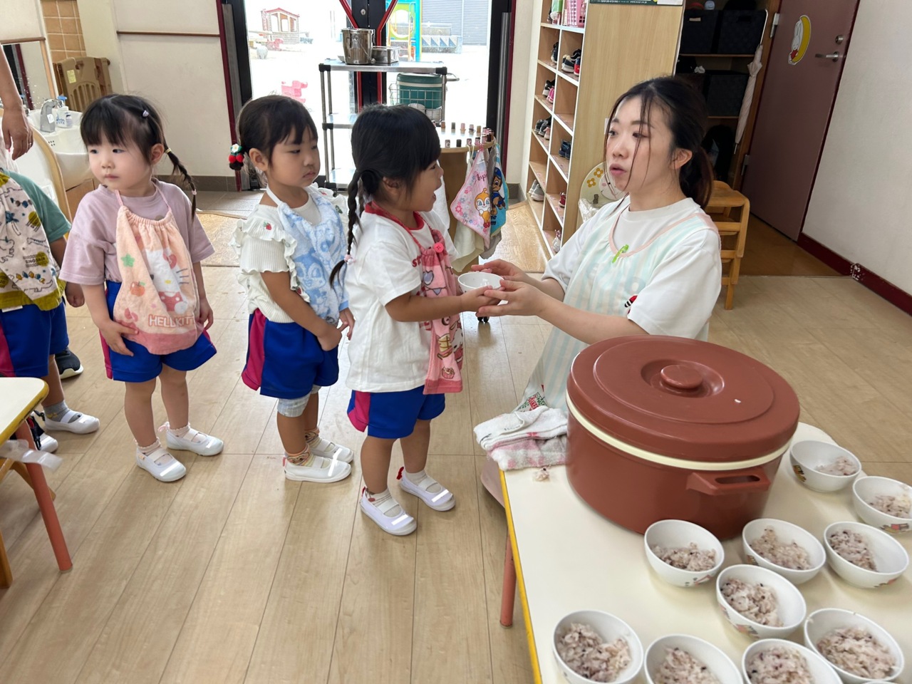 給食の配膳を始めました。 落とさないように、両手で持って静かに運びます。 来週も・・・お楽しみに(^^)/