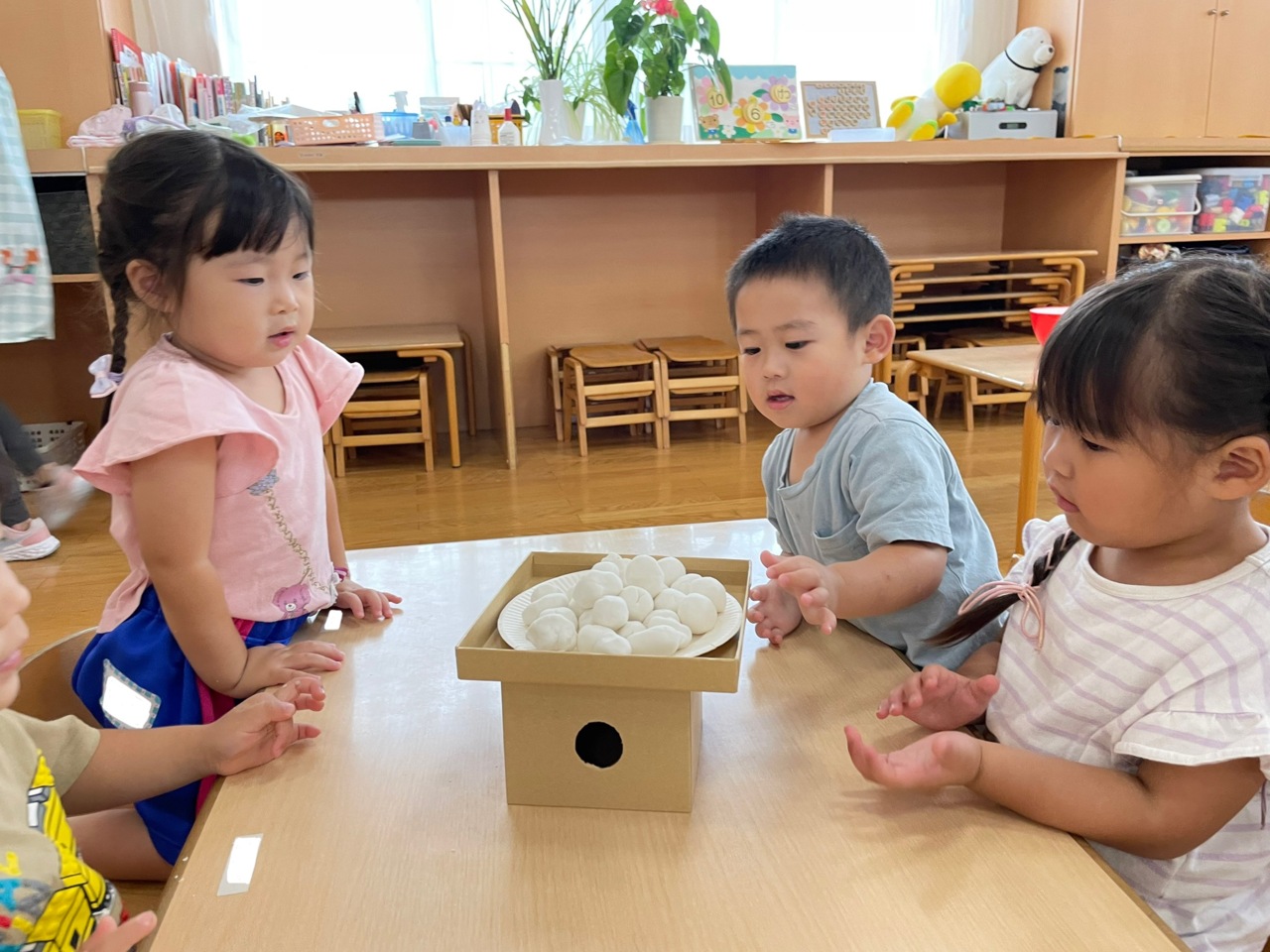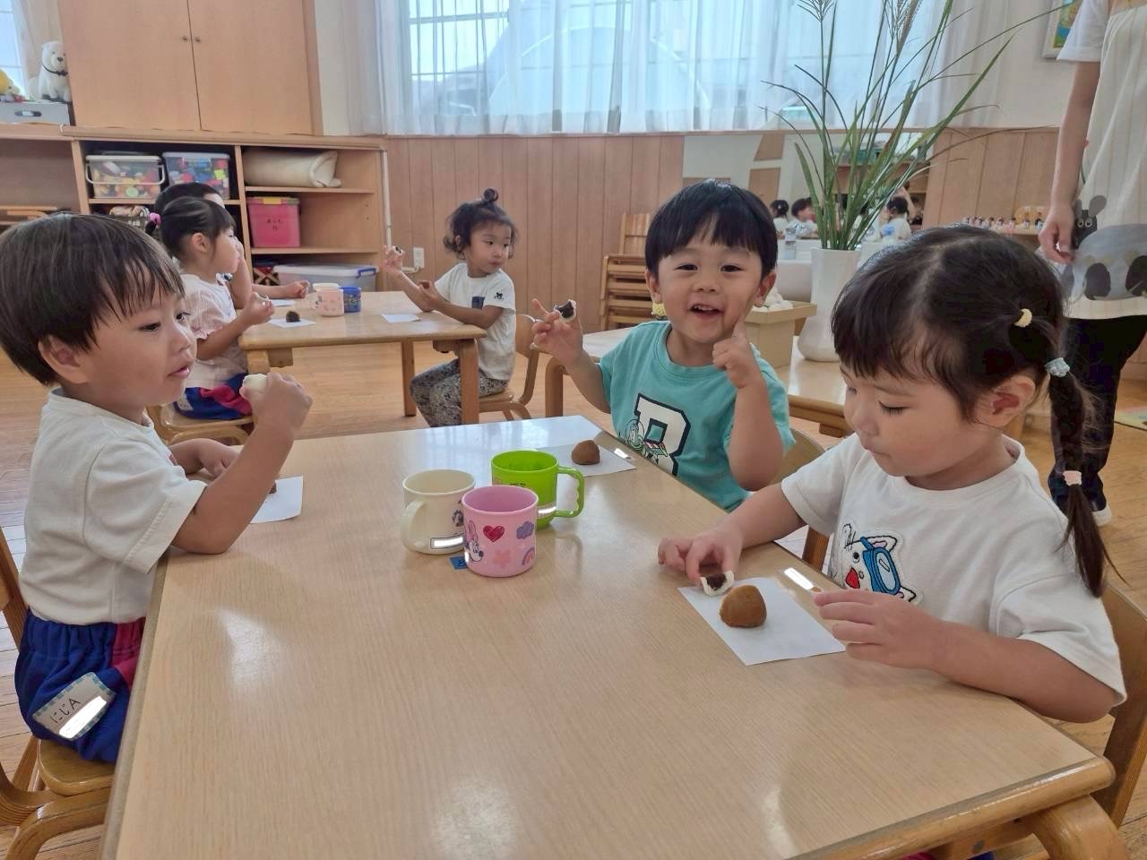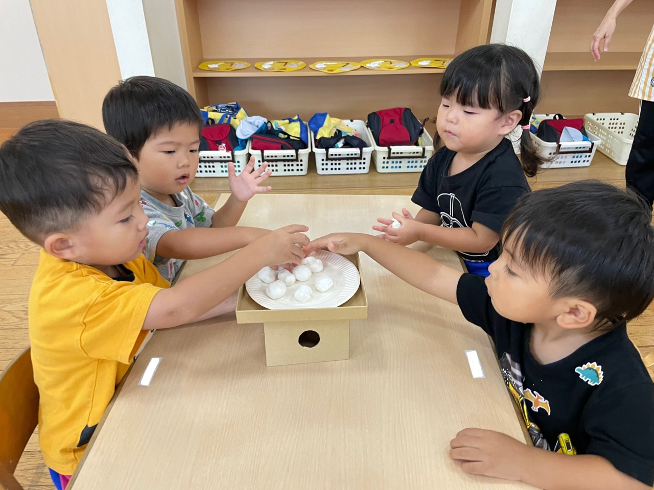 丸いお団子、ちょっとつぶれたお団子…子どもたちが一生懸命作ったいろんなお団子です♪