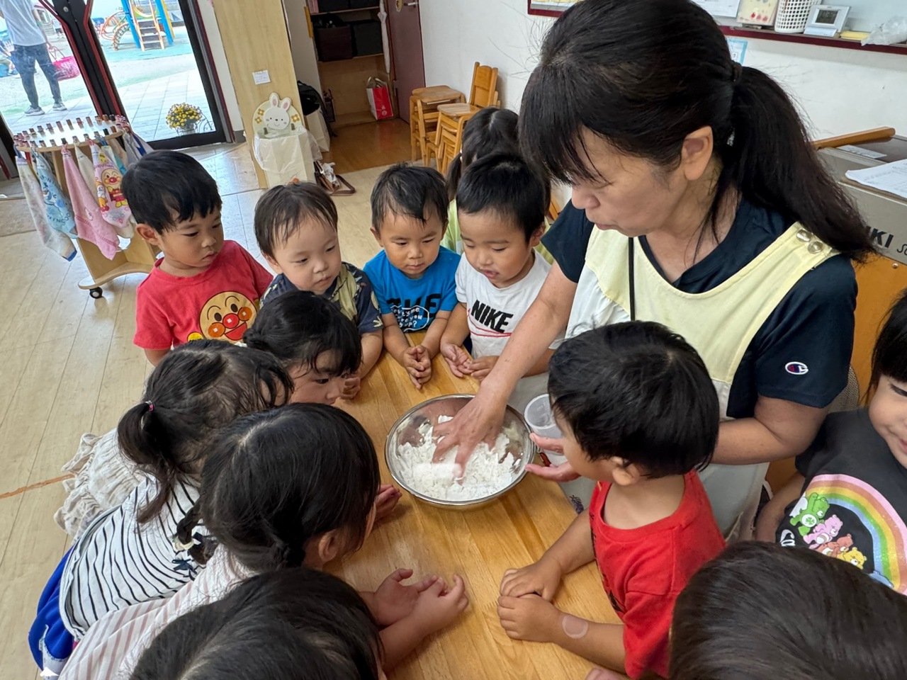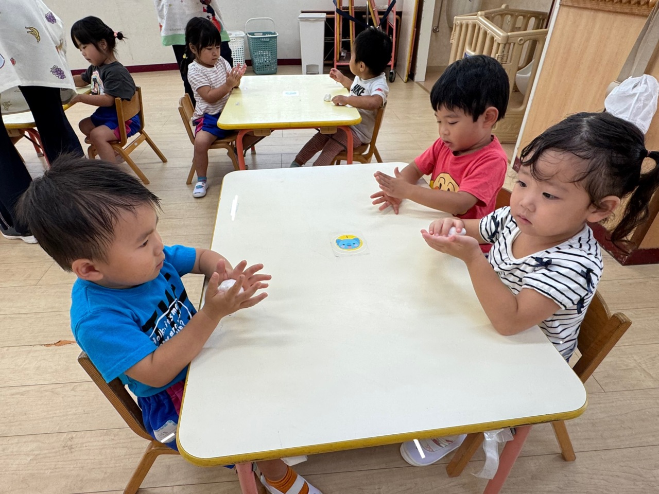 みんなで、お団子を作るお手伝いです♪ 両手でコロコロ!