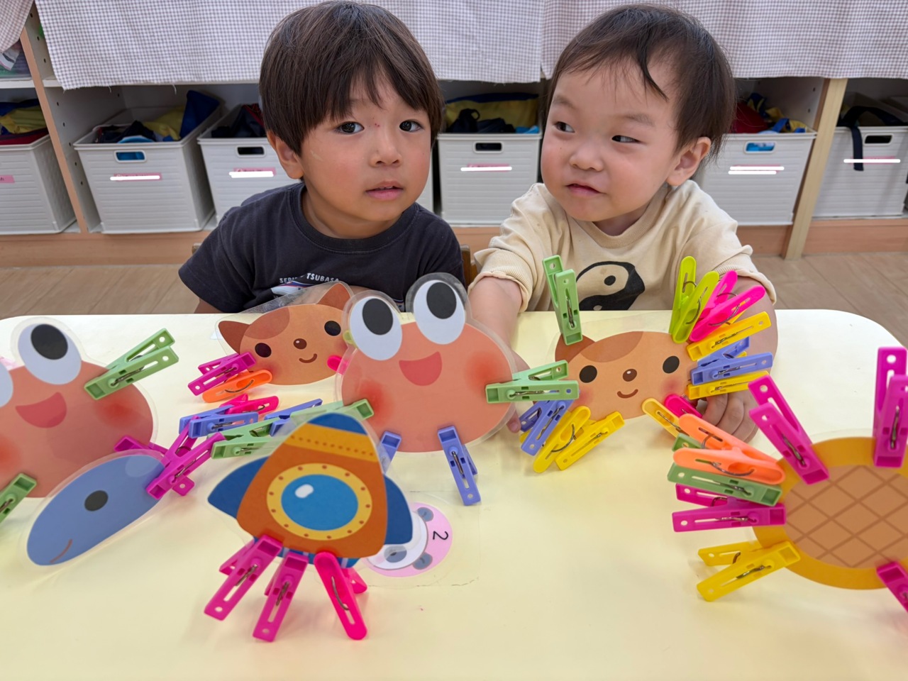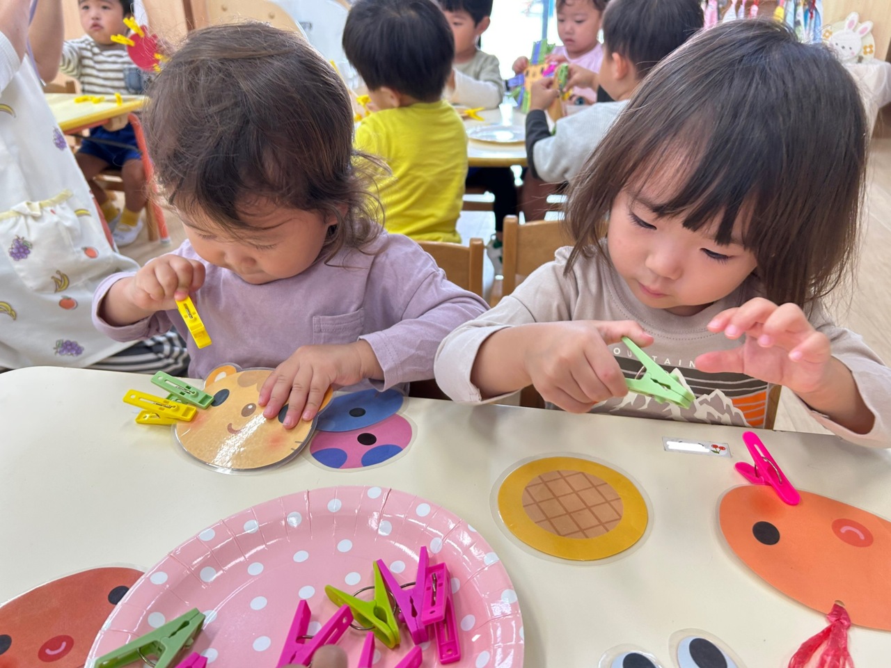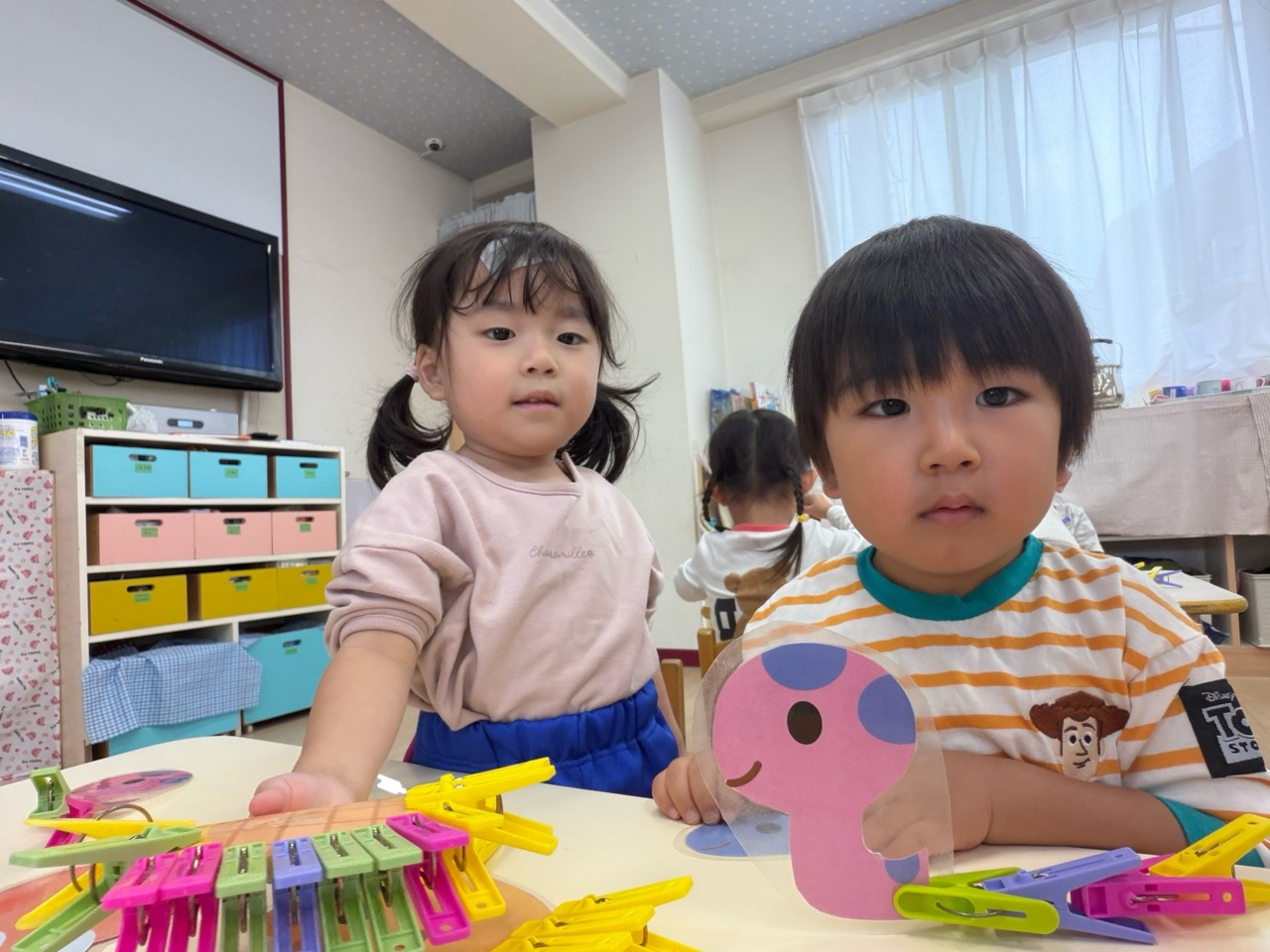 洗濯ばさみ遊び☆ 指をぎゅーっとして、出来るかな?