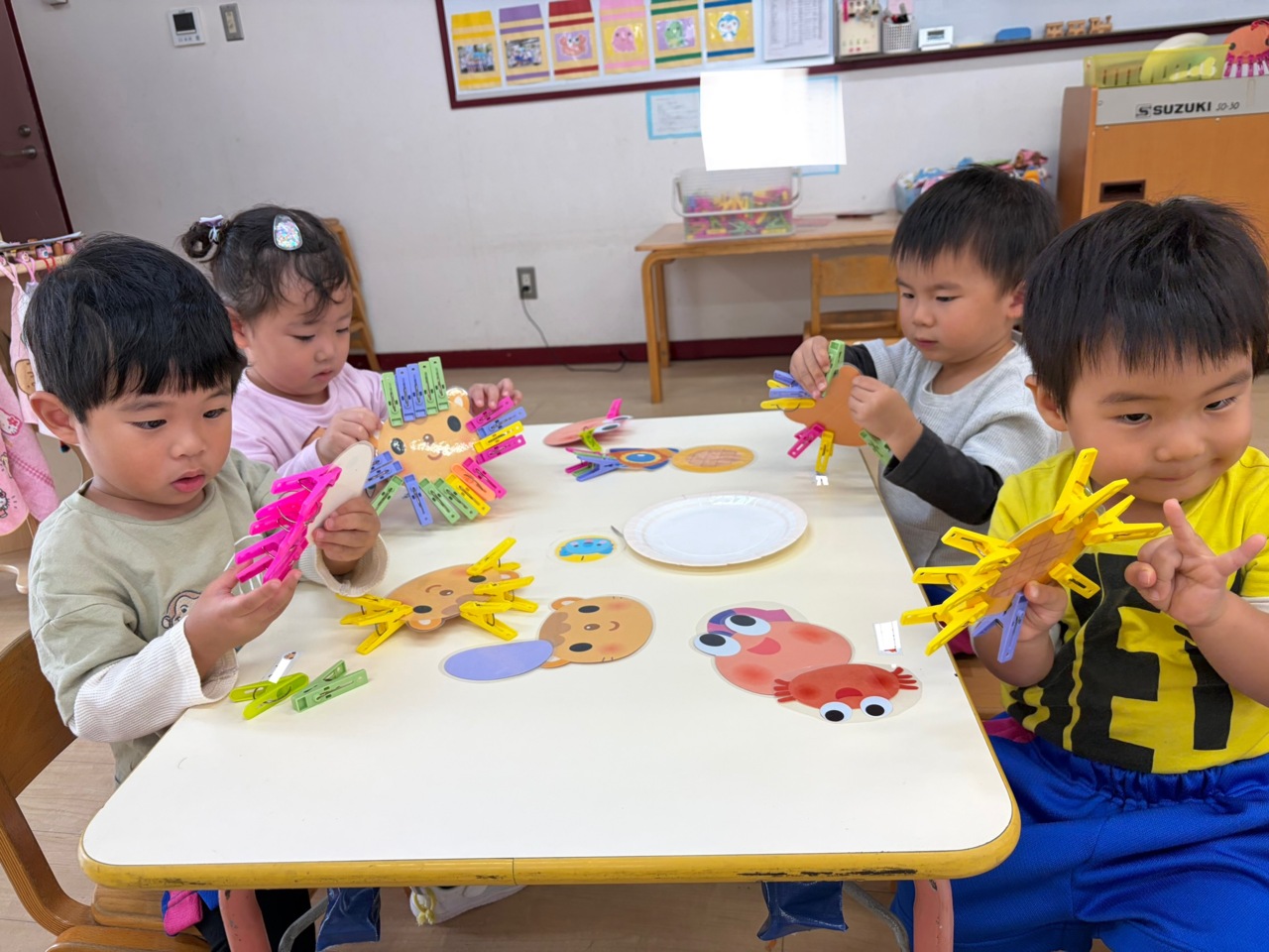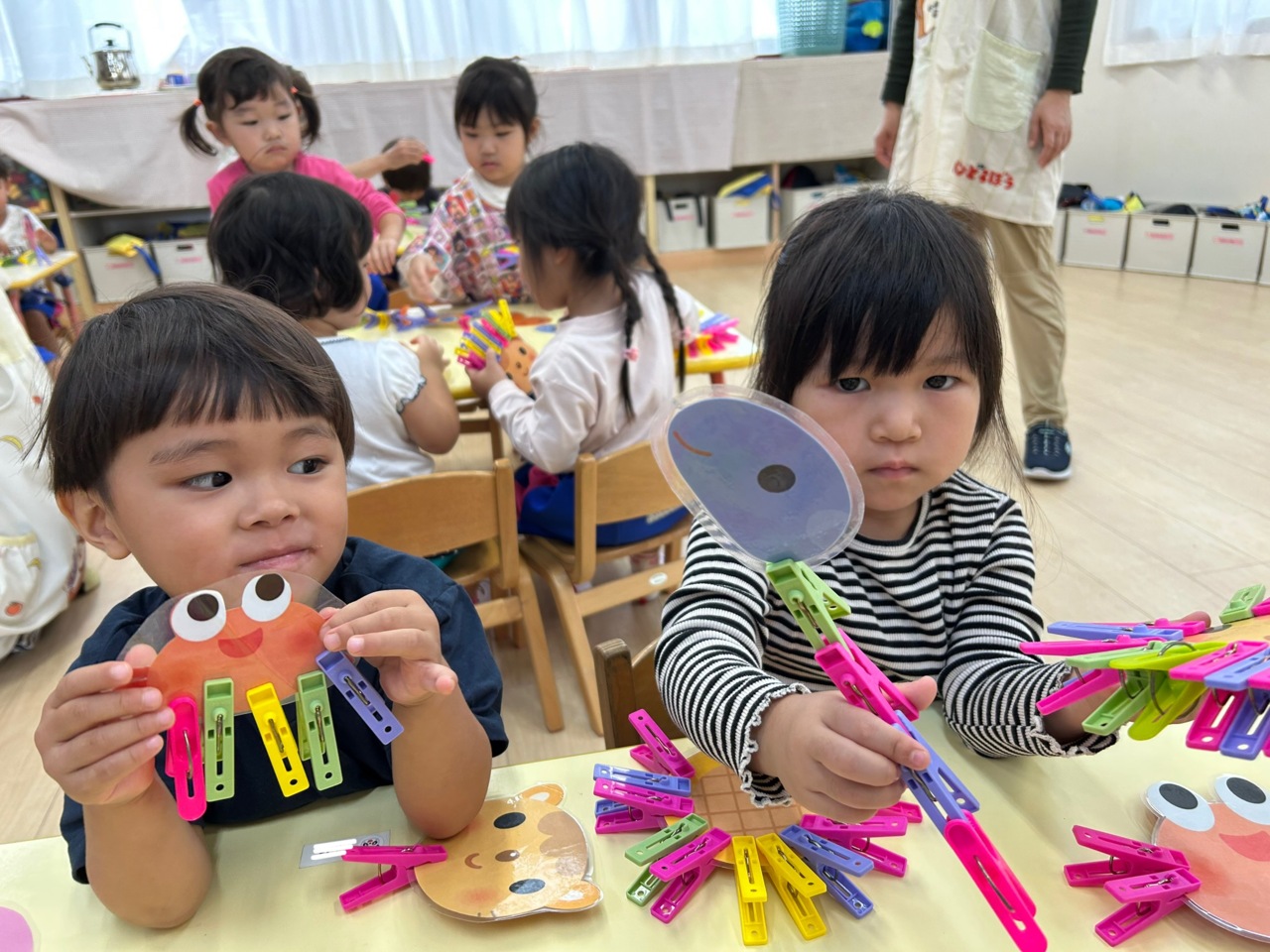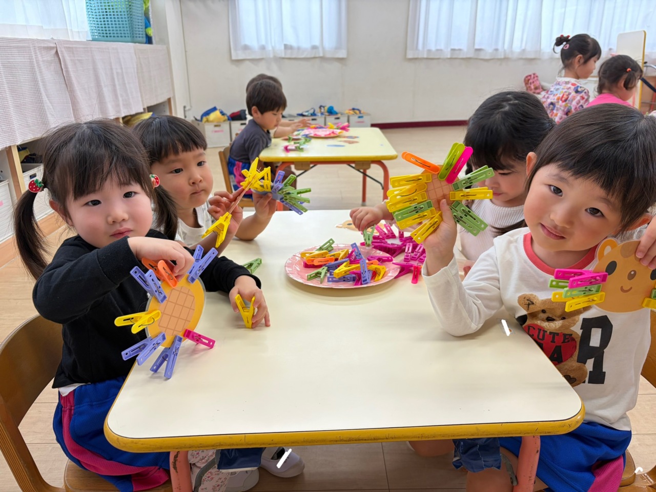 洗濯ばさみ遊び☆ 指をぎゅーっとして、出来るかな?