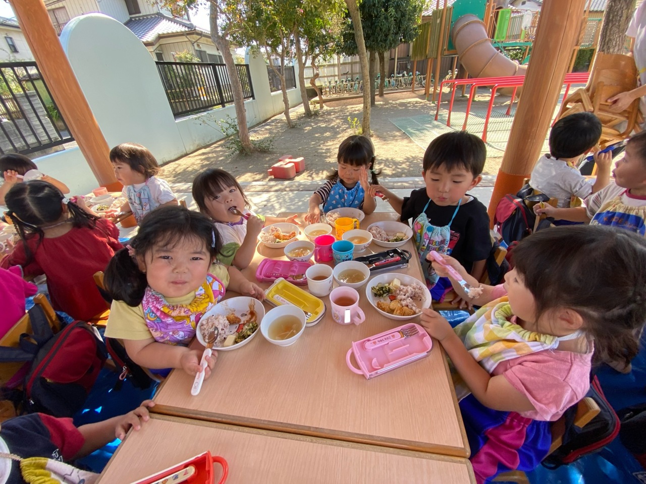 「帰ったらパパやママに外で食べたよって言うね!」と話していました。ぜひ、お家でも聞いてみてくださいね~