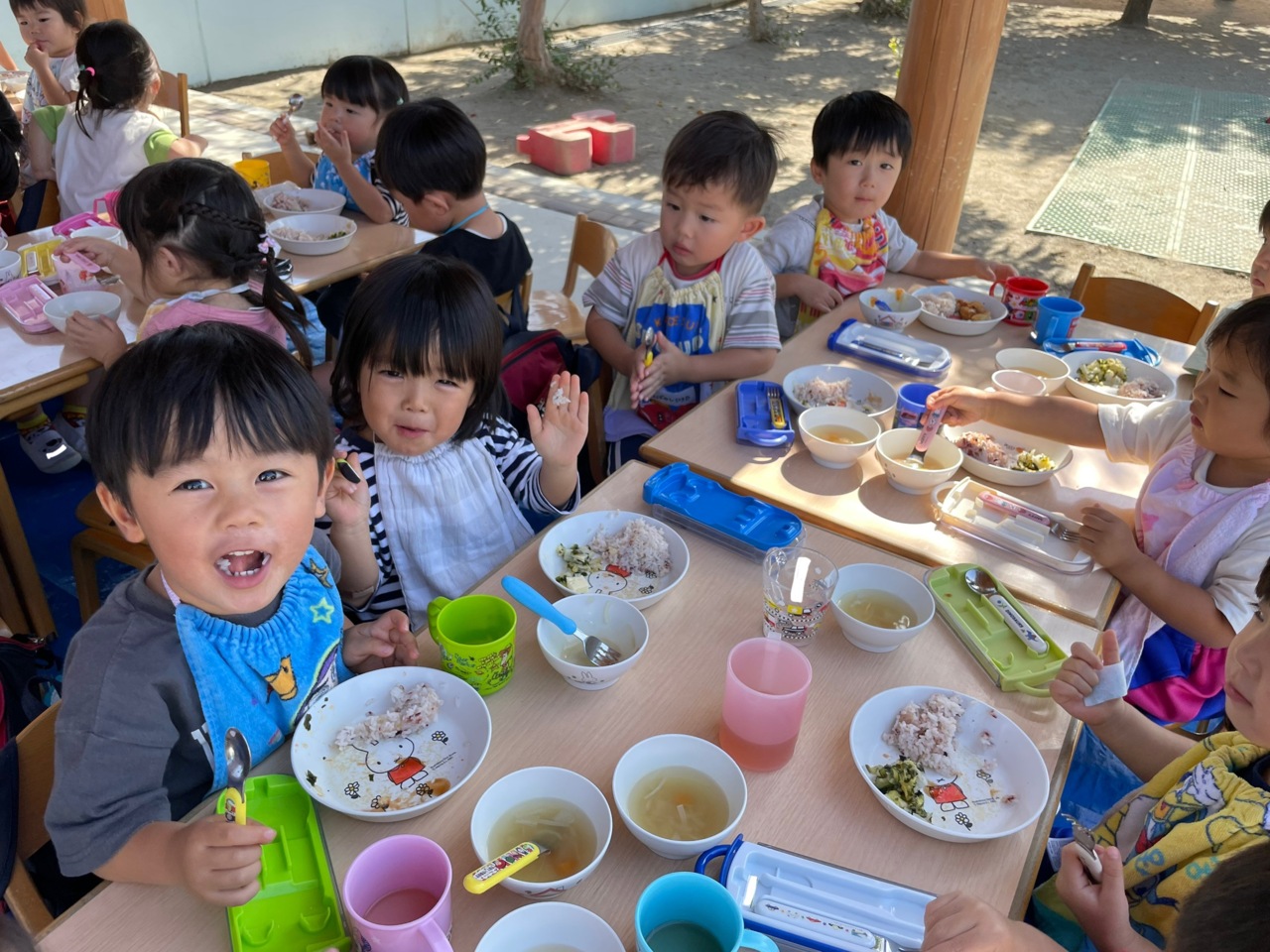 朝から外での給食を楽しみにしていたにじさんです(*^▽^*)