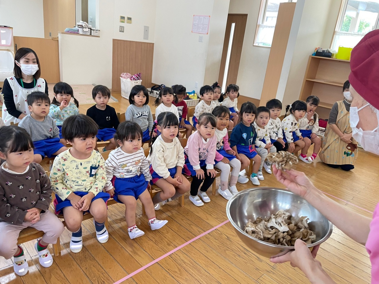 ミールケアの給食の先生に来ていただいて、きのこのお話を聞きました。