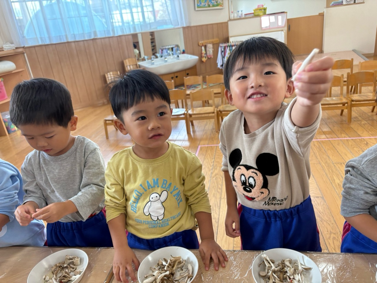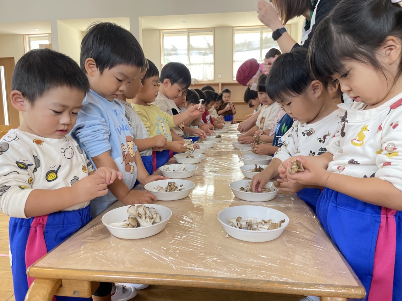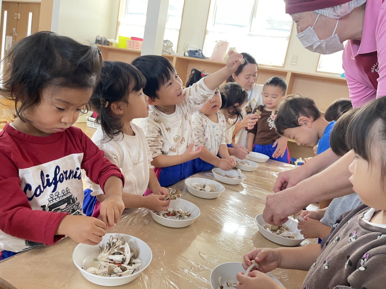 きのこをほぐすお手伝いです。 みんな張り切って行います。