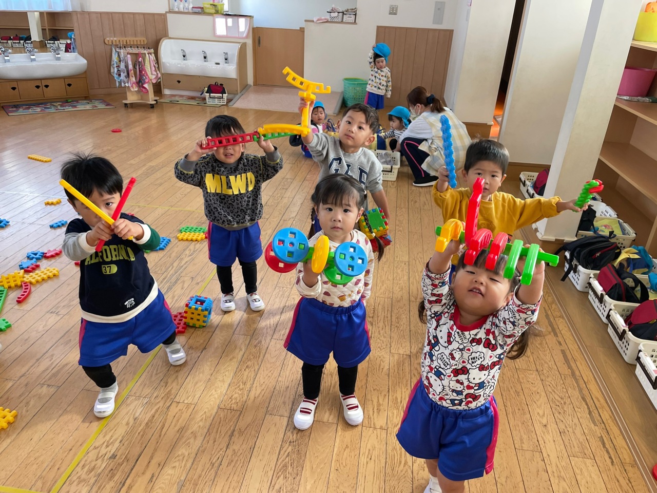 「みてみて!」 自分で作ったブロックを嬉しそうに見せてくれます!