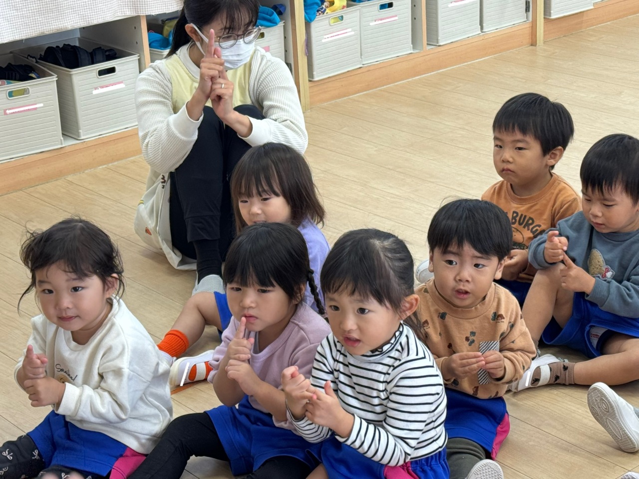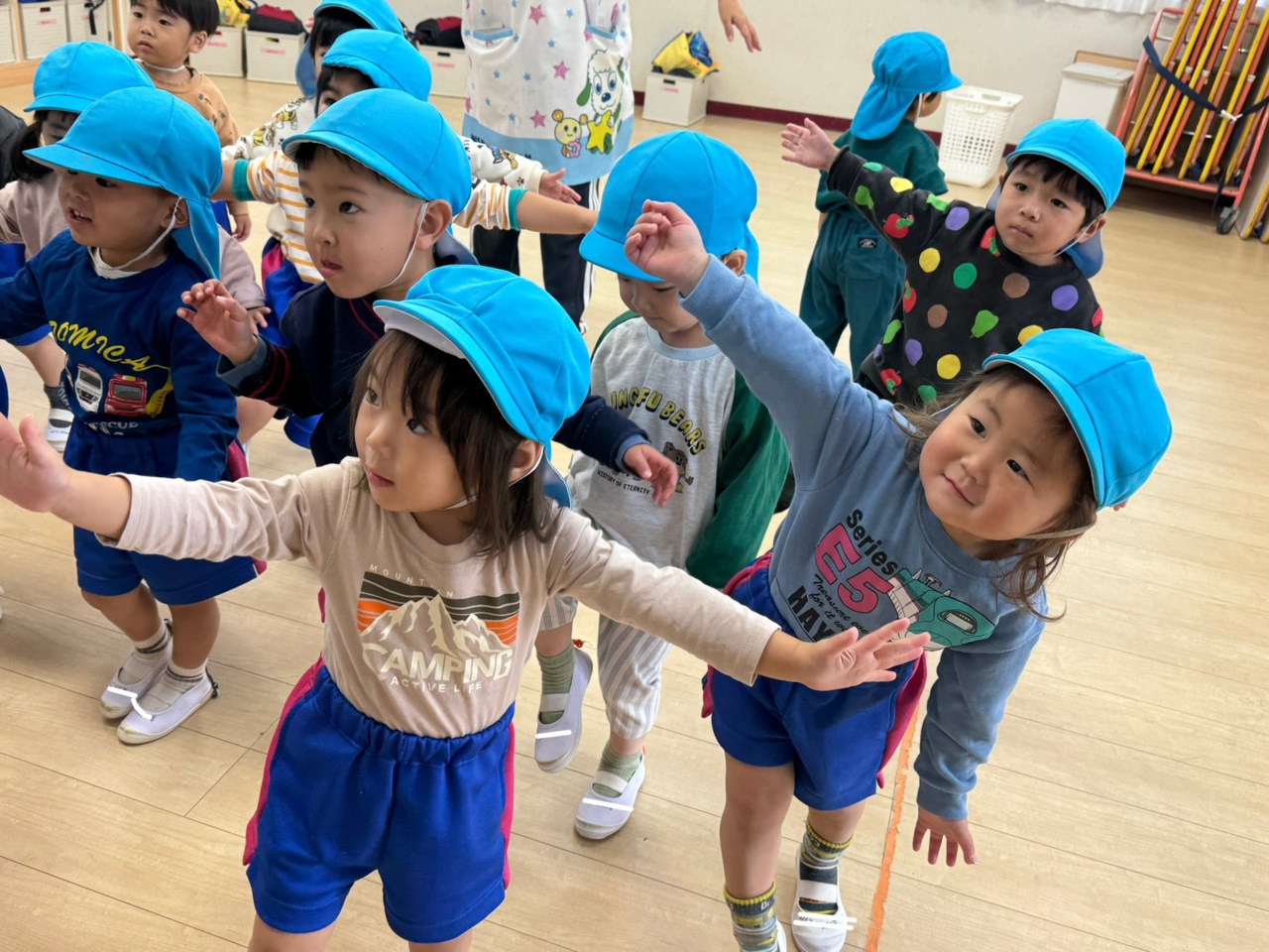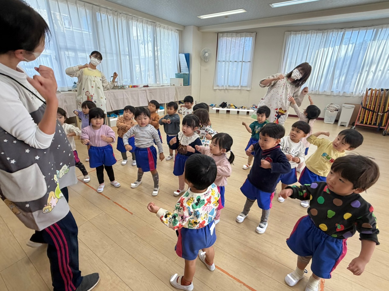 絵本「けんけんぱっ」を見た後、みんなで「ぱっ!」