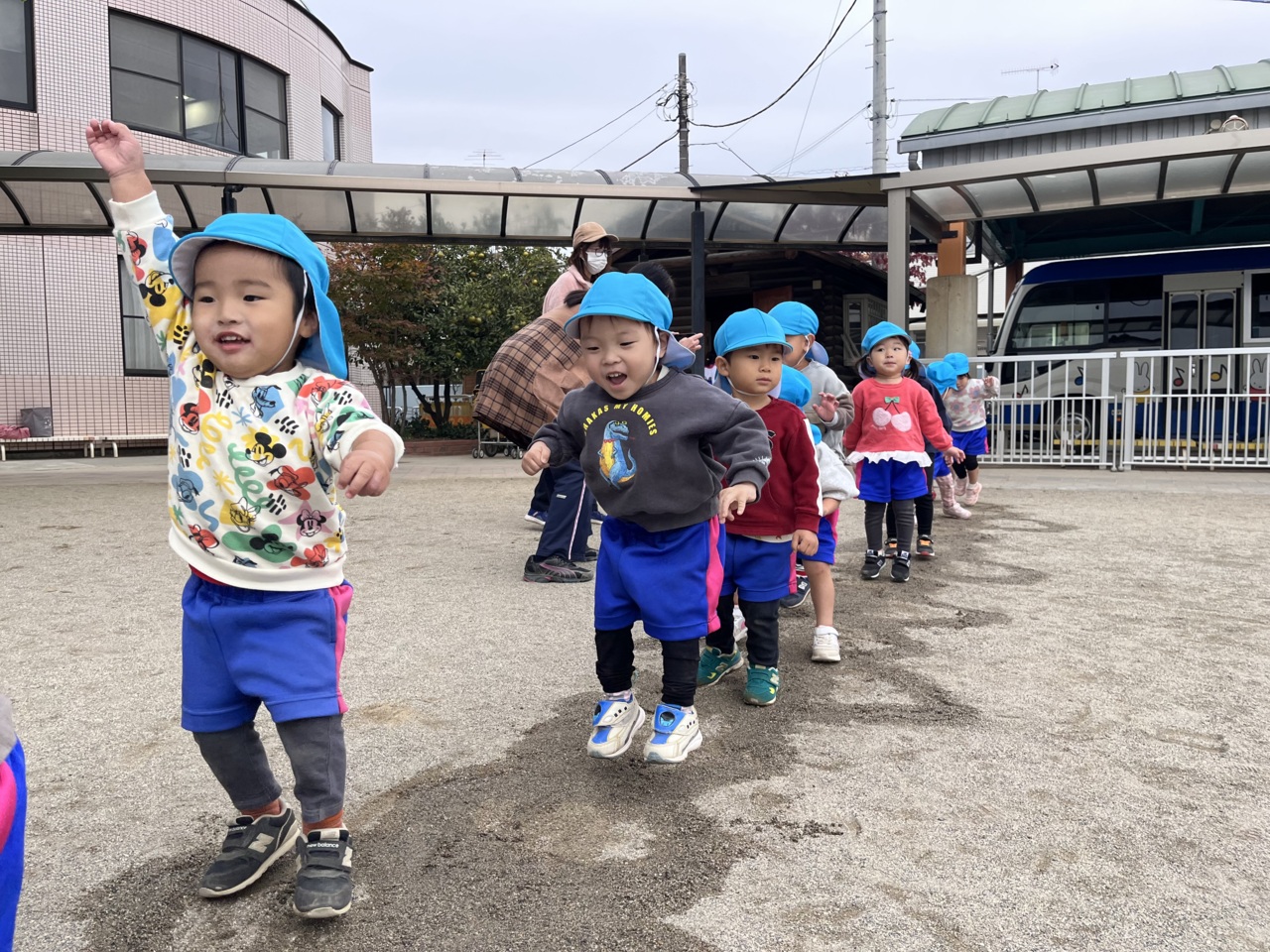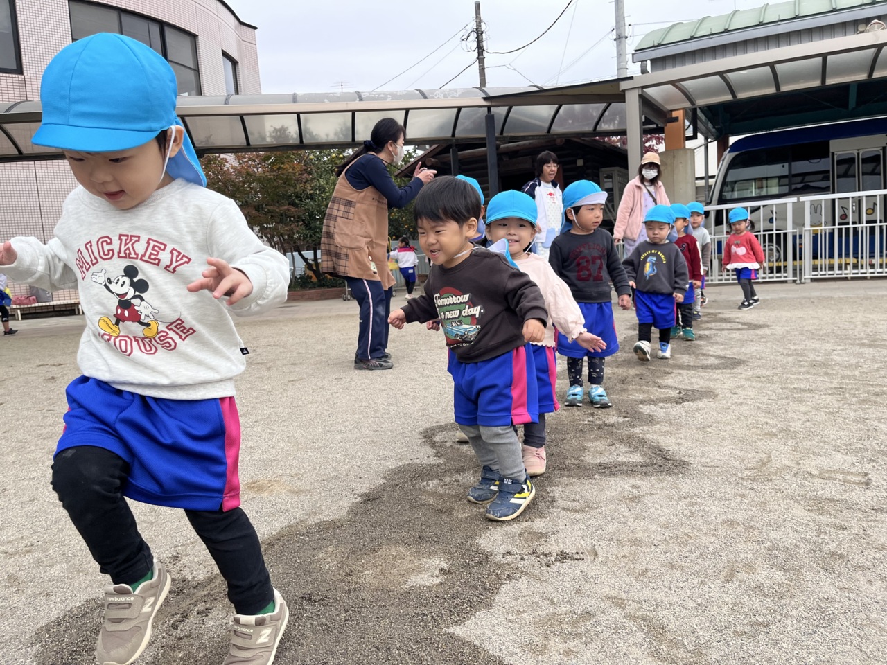 1列になって、長ーい「けんけんぱっ」を楽しみました。