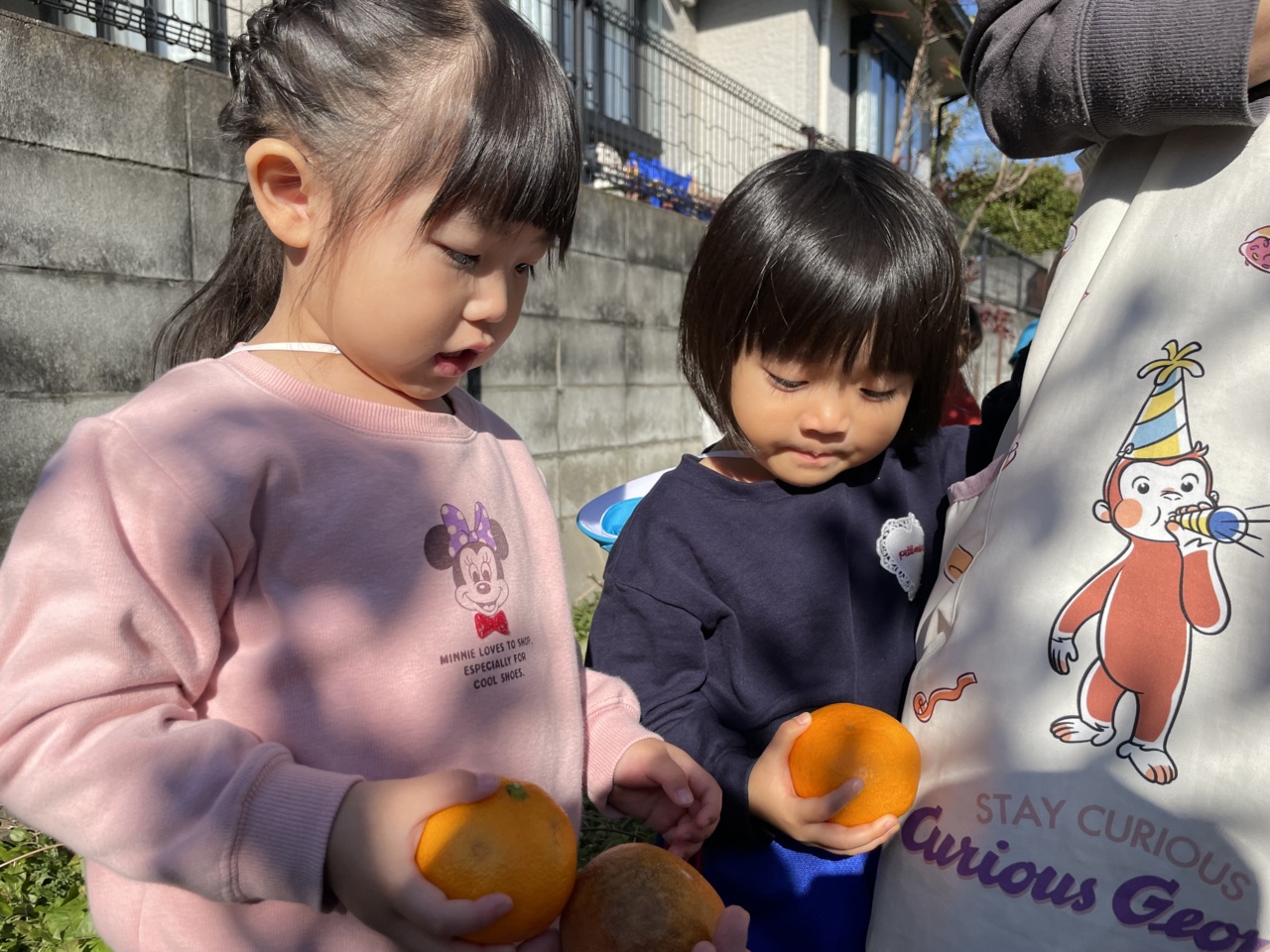 お友だちとみかんを持ってにっこり(*^▽^*)