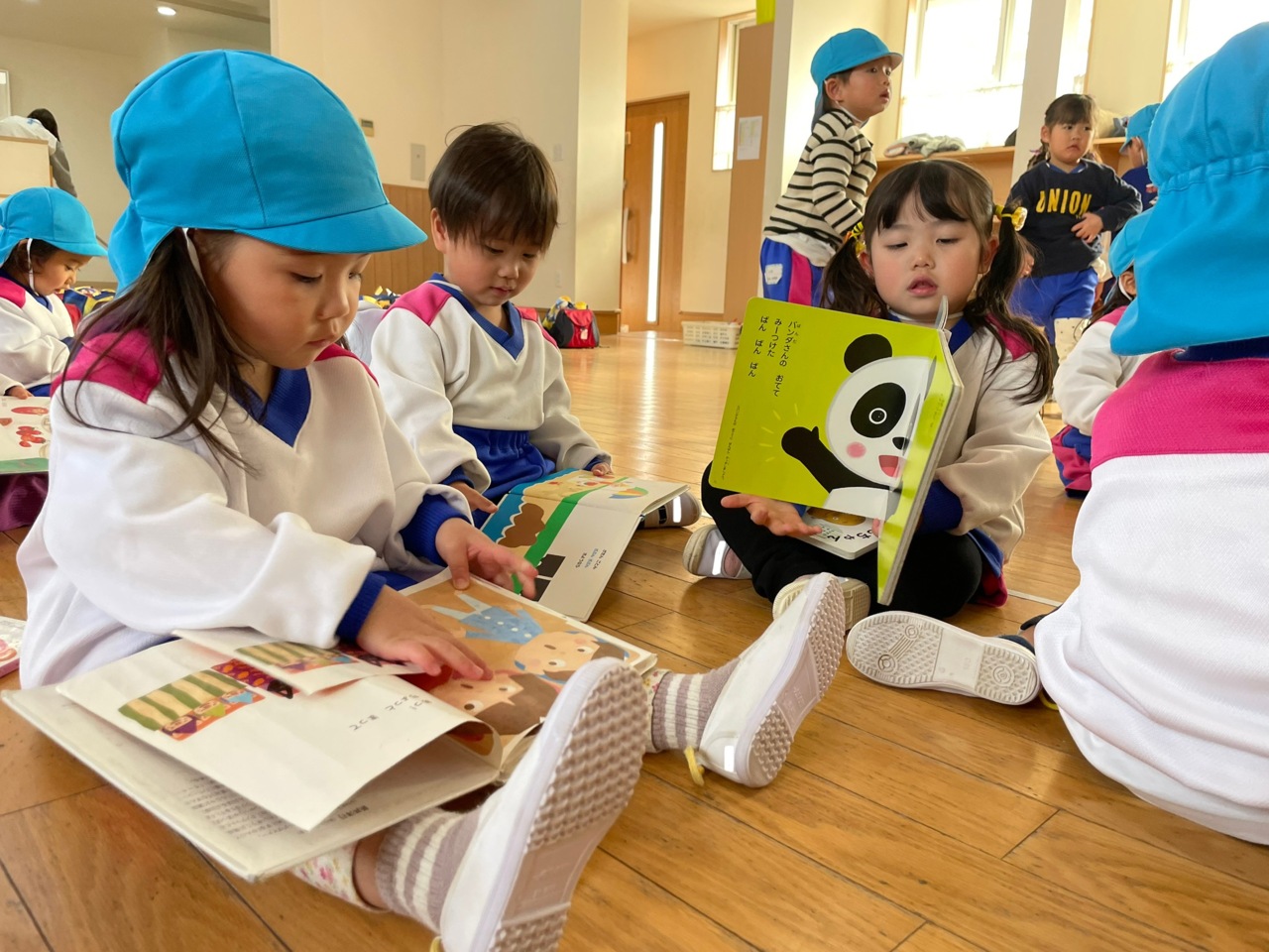 絵本を集中して読んでいます。
